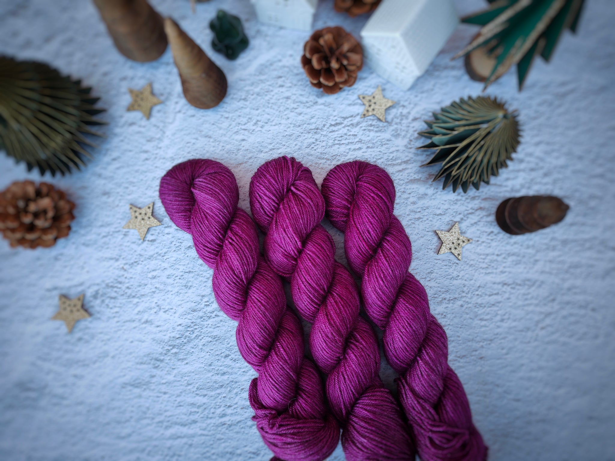 Laine teinte à la main avec des teintures Acides Eco-Responsables et lavée avec une lessive écologique.